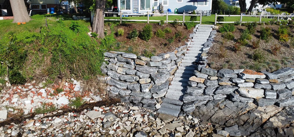 Our custom seawalls are engineered to withstand Maine’s harsh coastal conditions. Designed to protect your property from the damaging effects of erosion, our seawalls provide both structural integrity and aesthetic appeal.